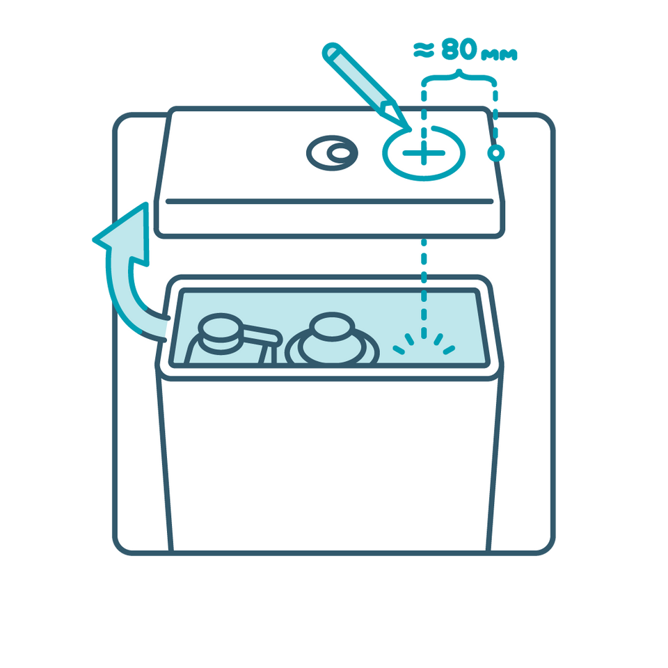 Retira la tapa de la cisterna, comprueba que el hueco esta a derecha o izquierda. Márcalo con una X
